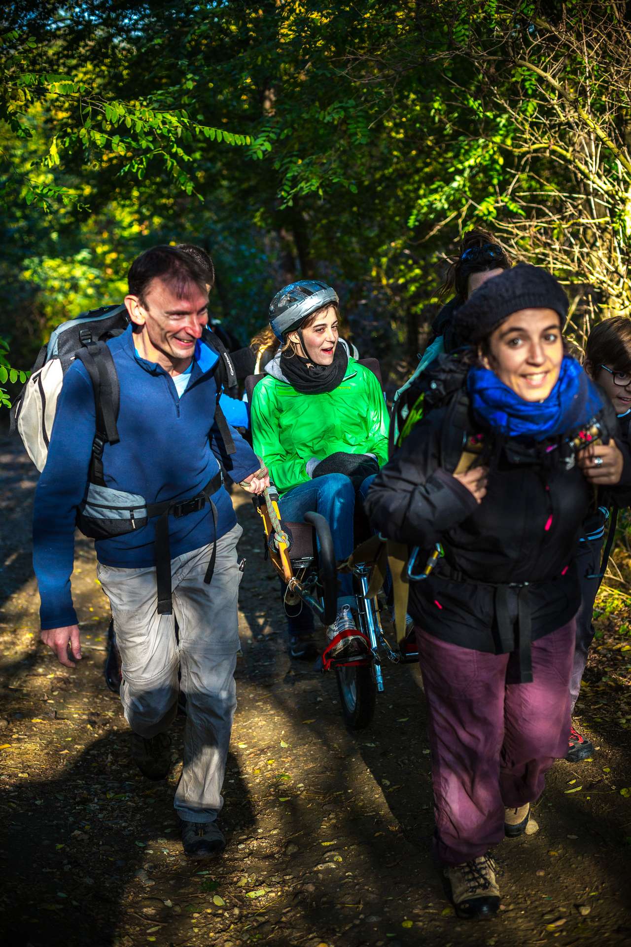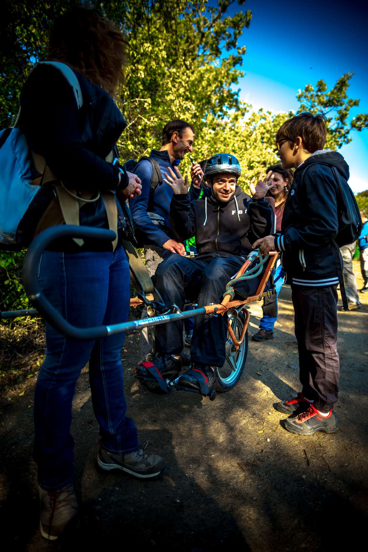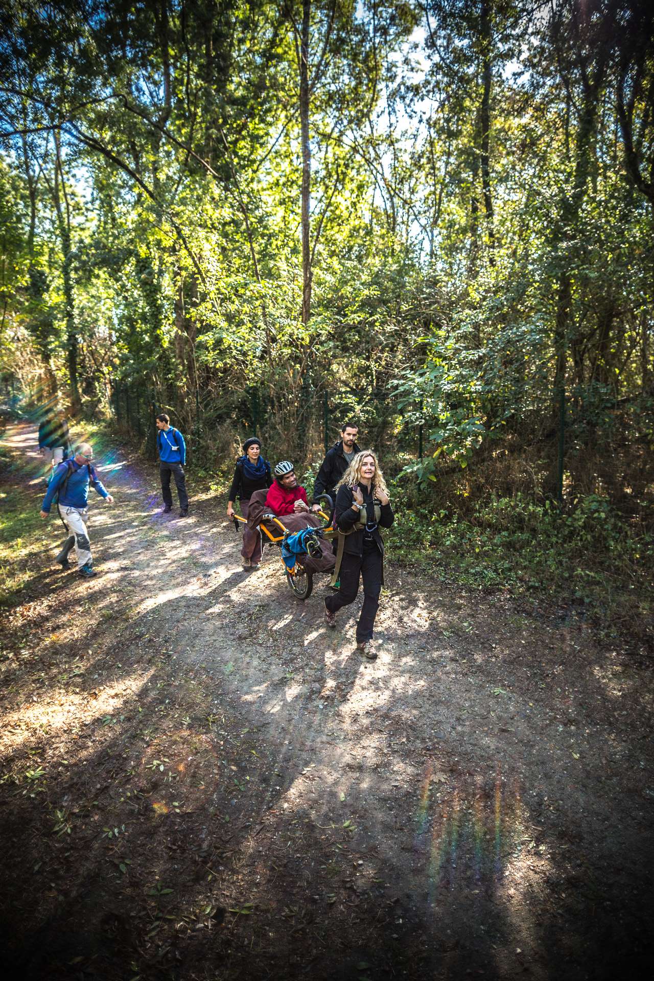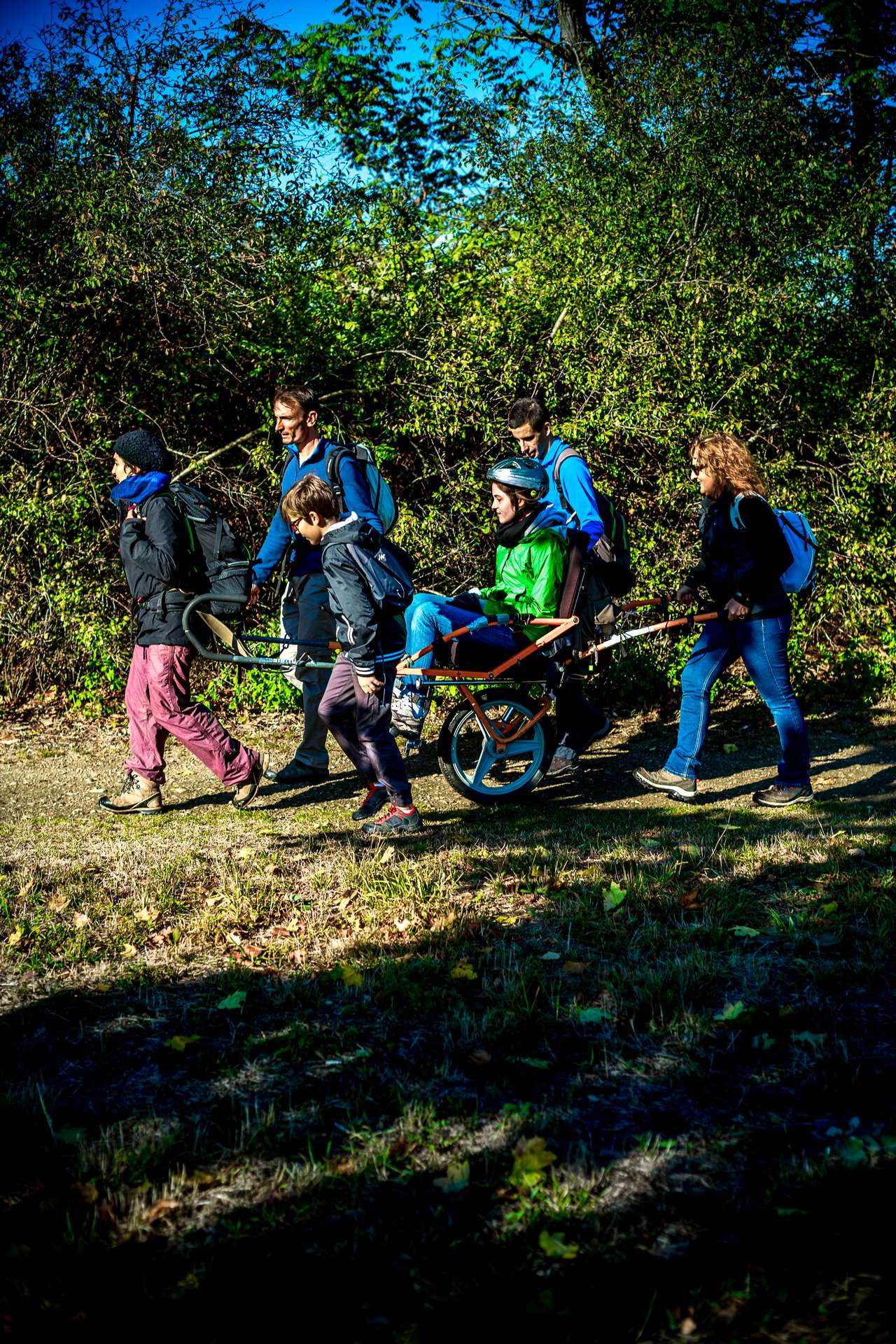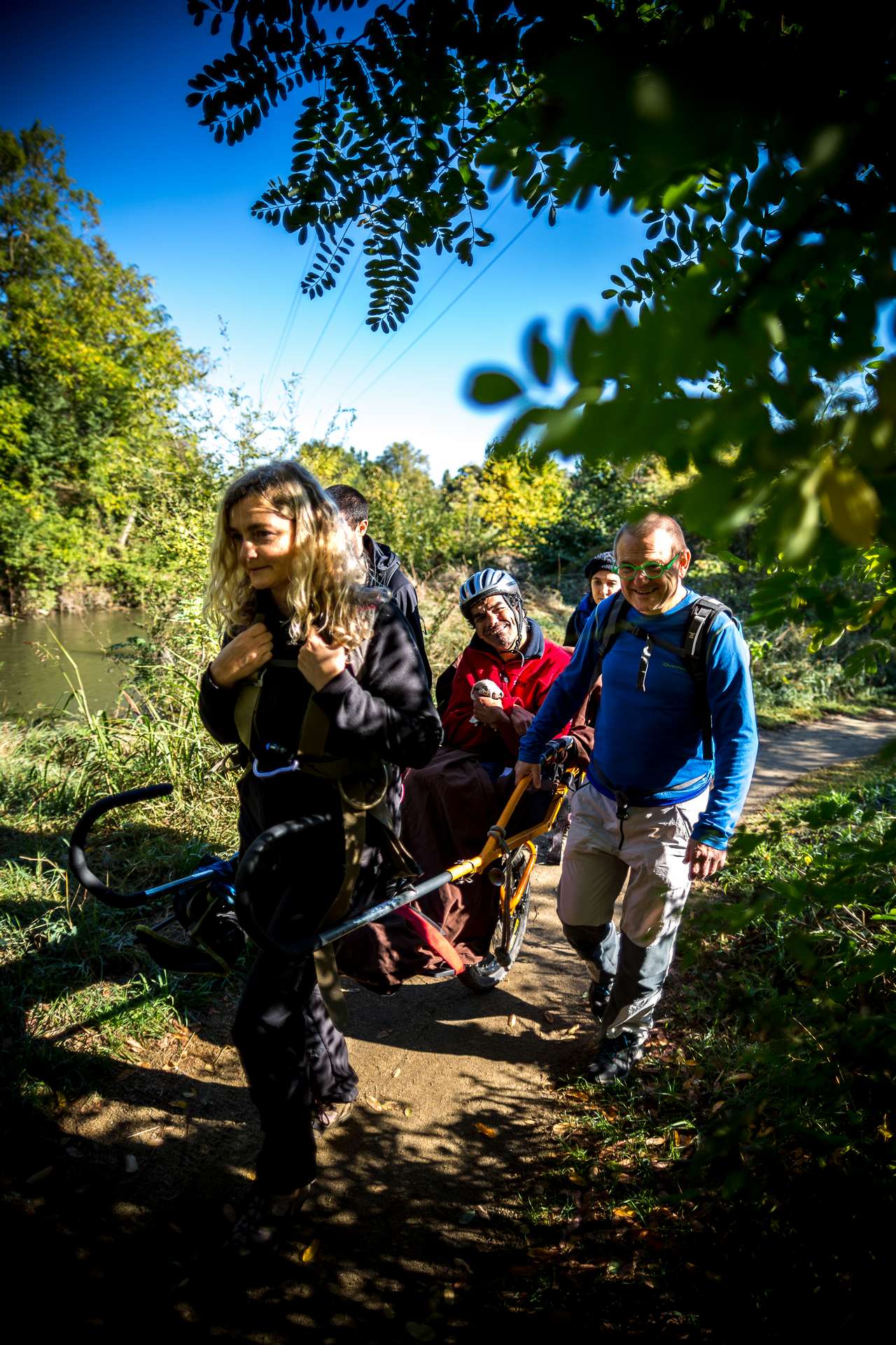 Mixité, solidarité et partage sont au coeur des sorties de l’association UMEN. Nous avons suivi une journée d’initiation aux maniements des Joëlettes : fauteuils à une roue qui permettent aux personnes à mobilité réduite de participer pleinement aux randonnées en empruntant tout type de chemins (sentiers étroits, dénivelés…). Une innovation qui ouvre le champ des possibles. Ici l’équation : ingéniosité technique + solidarité fait encore ses preuves ! Une photo pour célébrer ces inventeurs de génie et toutes ces personnes qui se mettent au service des autres.