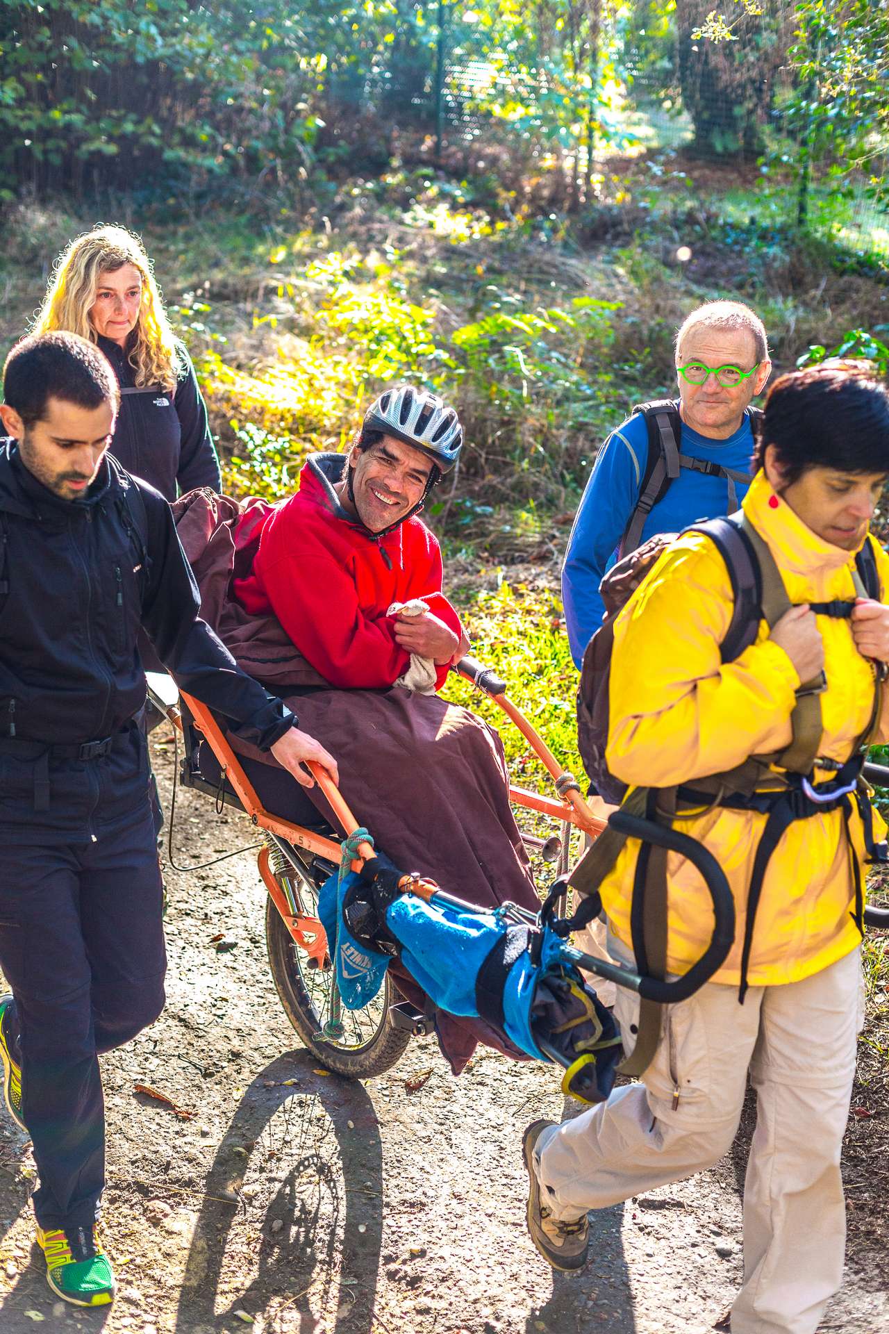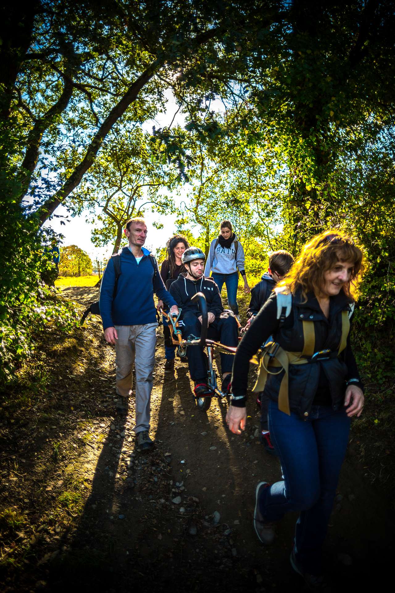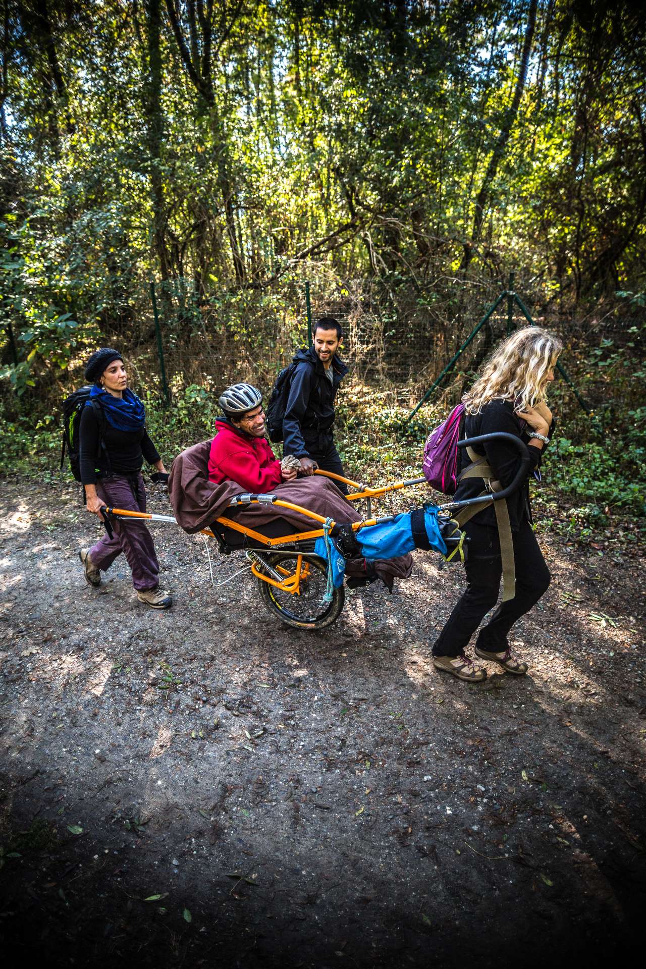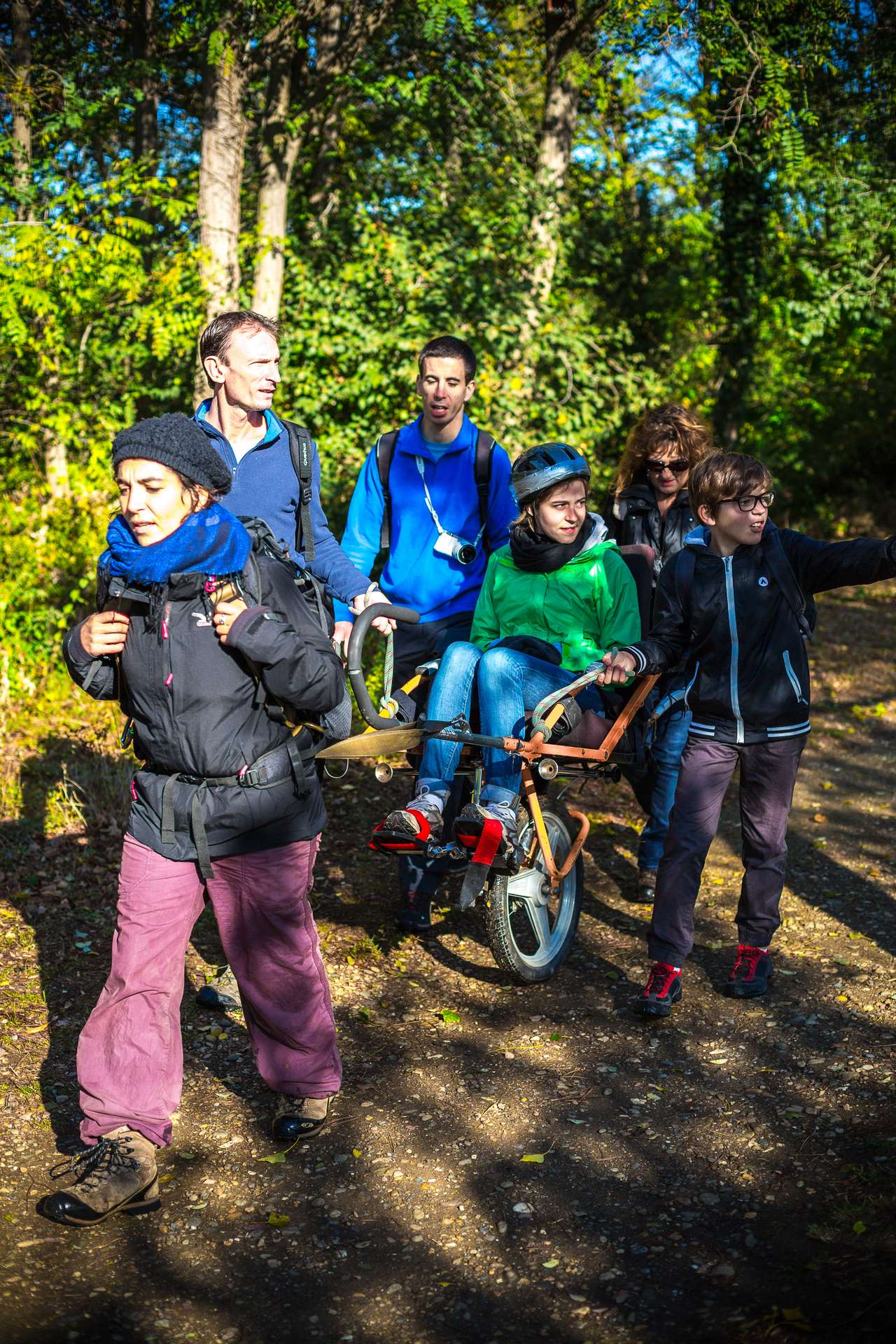 Mixité, solidarité et partage sont au coeur des sorties de l’association UMEN. Nous avons suivi une journée d’initiation aux maniements des Joëlettes : fauteuils à une roue qui permettent aux personnes à mobilité réduite de participer pleinement aux randonnées en empruntant tout type de chemins (sentiers étroits, dénivelés…). Une innovation qui ouvre le champ des possibles. Ici l’équation : ingéniosité technique + solidarité fait encore ses preuves ! Une photo pour célébrer ces inventeurs de génie et toutes ces personnes qui se mettent au service des autres.