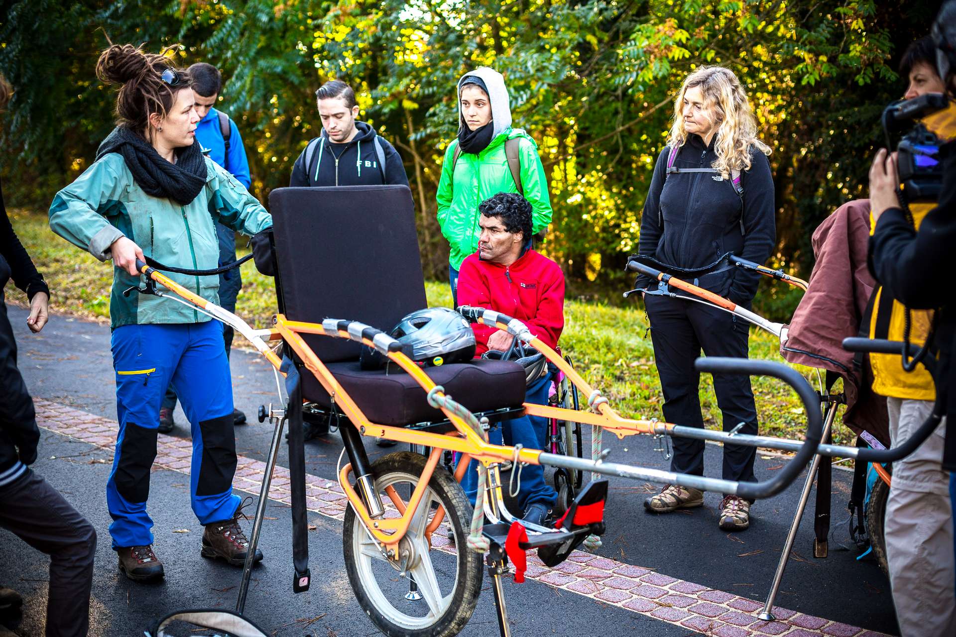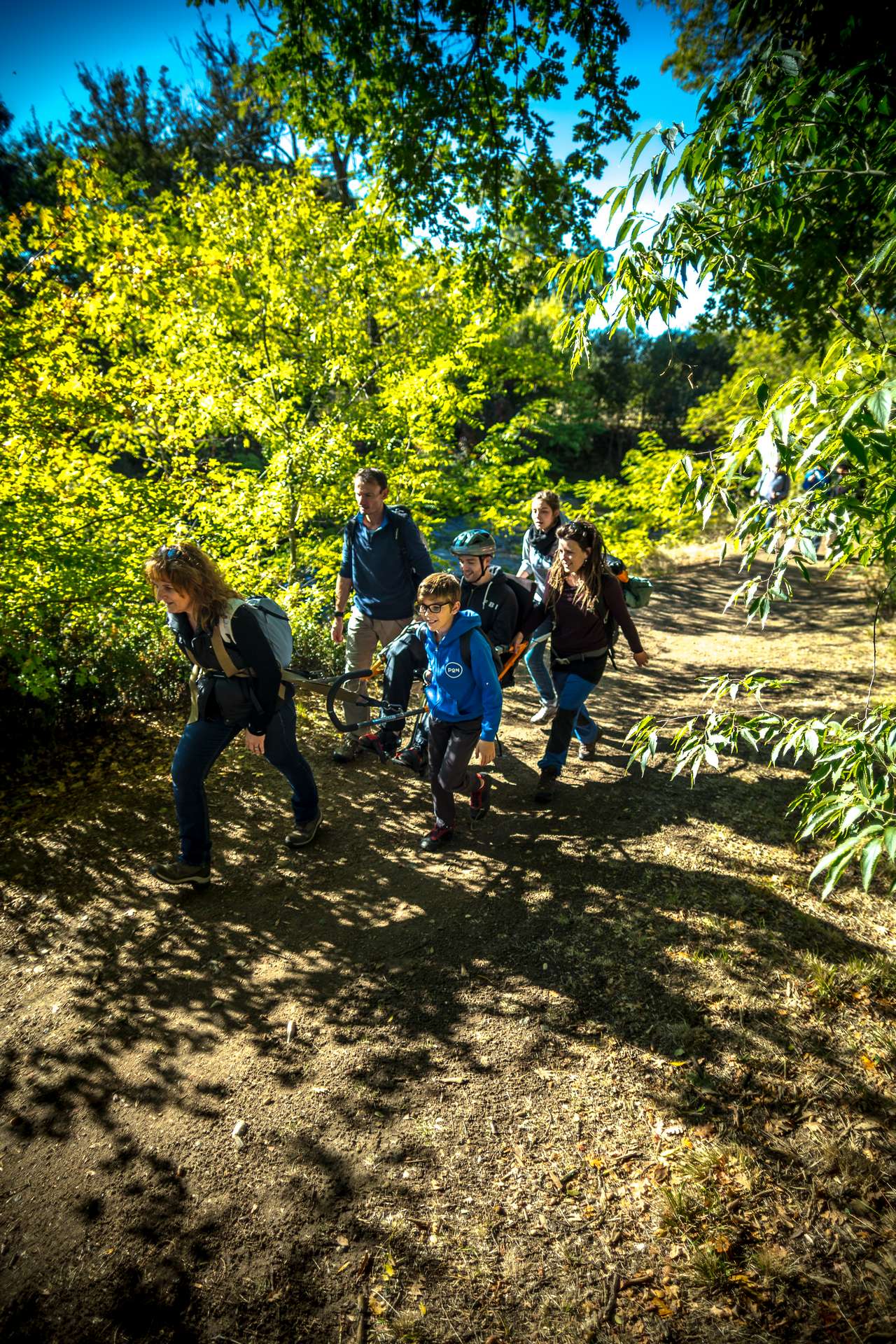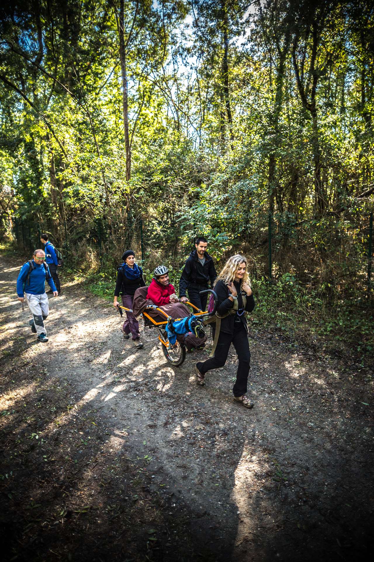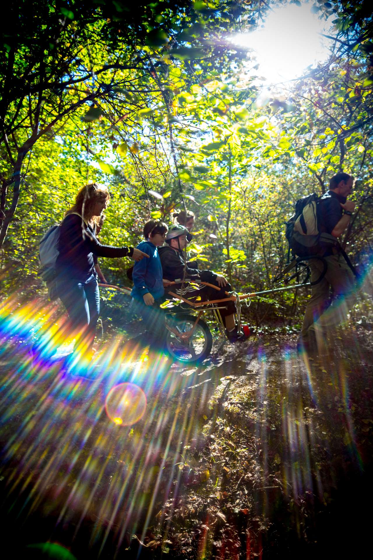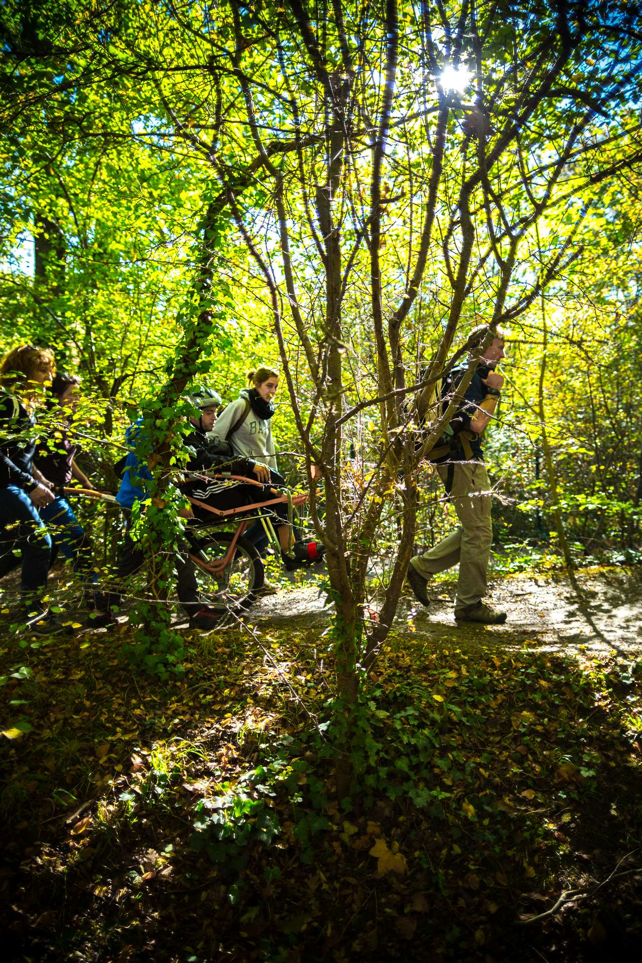 Mixité, solidarité et partage sont au coeur des sorties de l’association UMEN. Nous avons suivi une journée d’initiation aux maniements des Joëlettes : fauteuils à une roue qui permettent aux personnes à mobilité réduite de participer pleinement aux randonnées en empruntant tout type de chemins (sentiers étroits, dénivelés…). Une innovation qui ouvre le champ des possibles. Ici l’équation : ingéniosité technique + solidarité fait encore ses preuves ! Une photo pour célébrer ces inventeurs de génie et toutes ces personnes qui se mettent au service des autres.