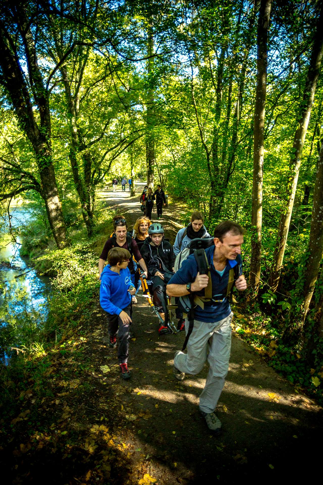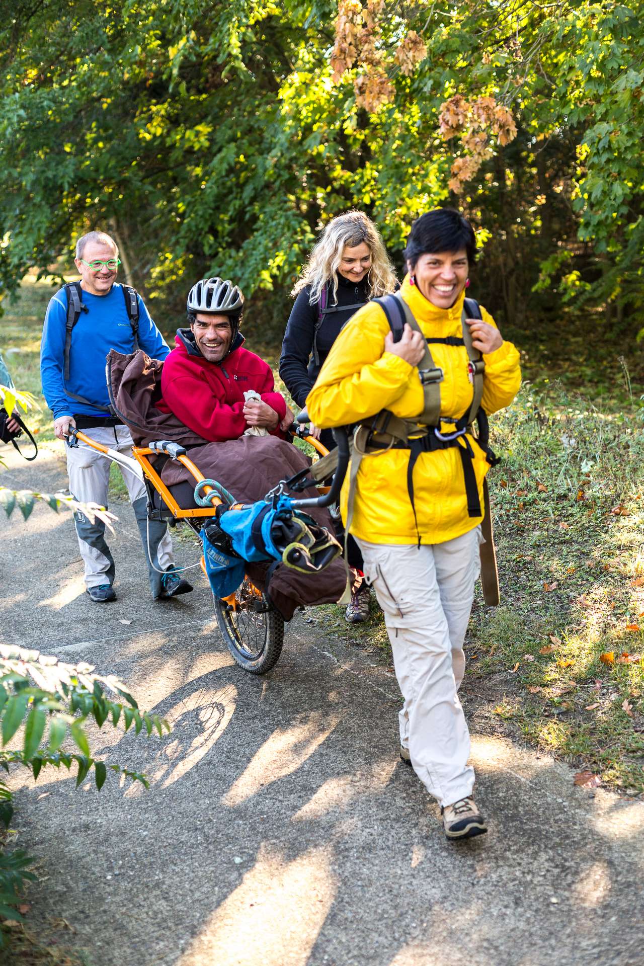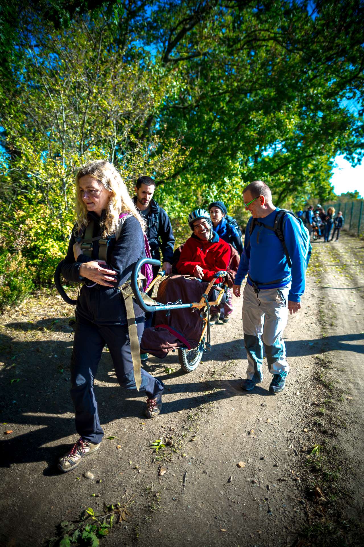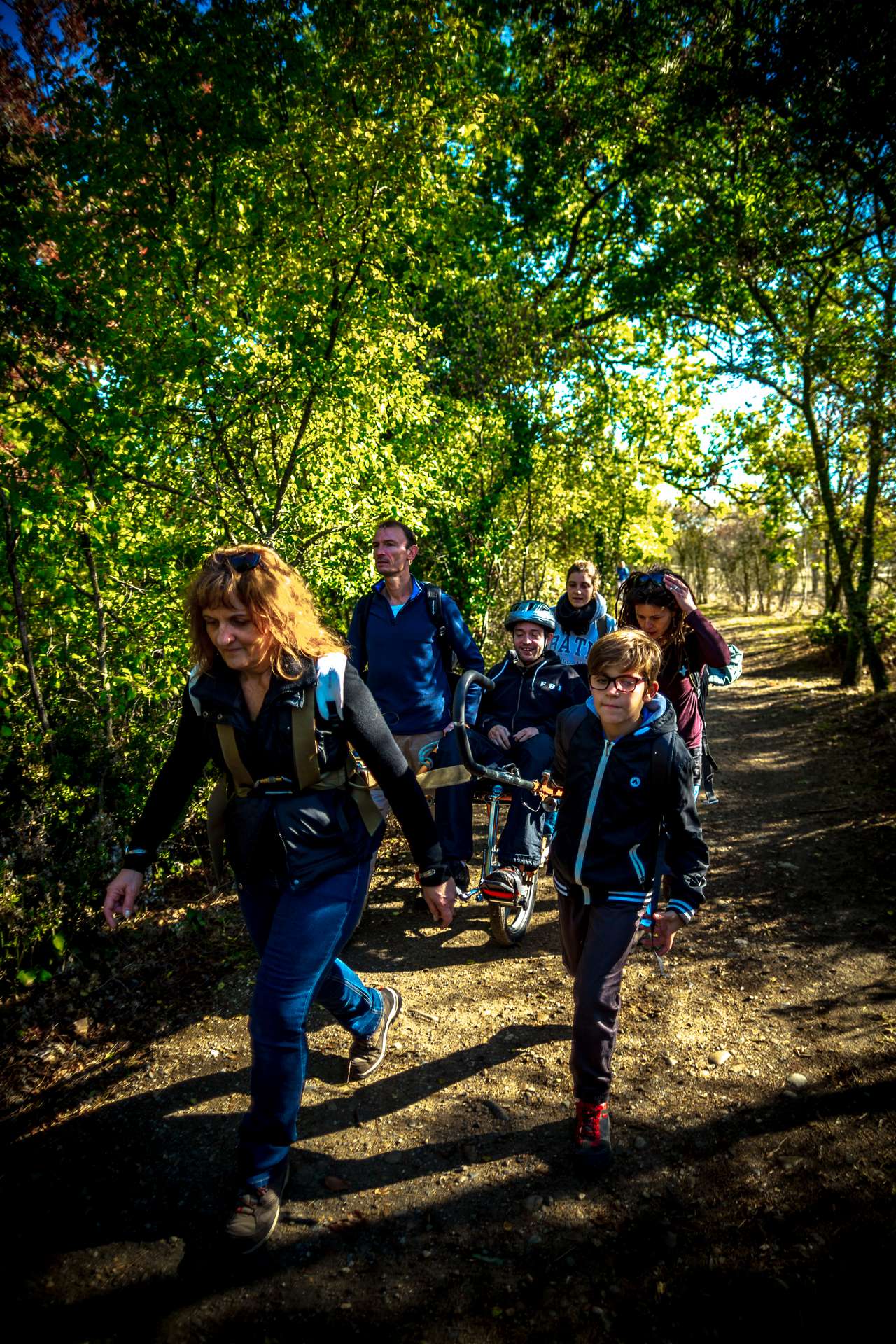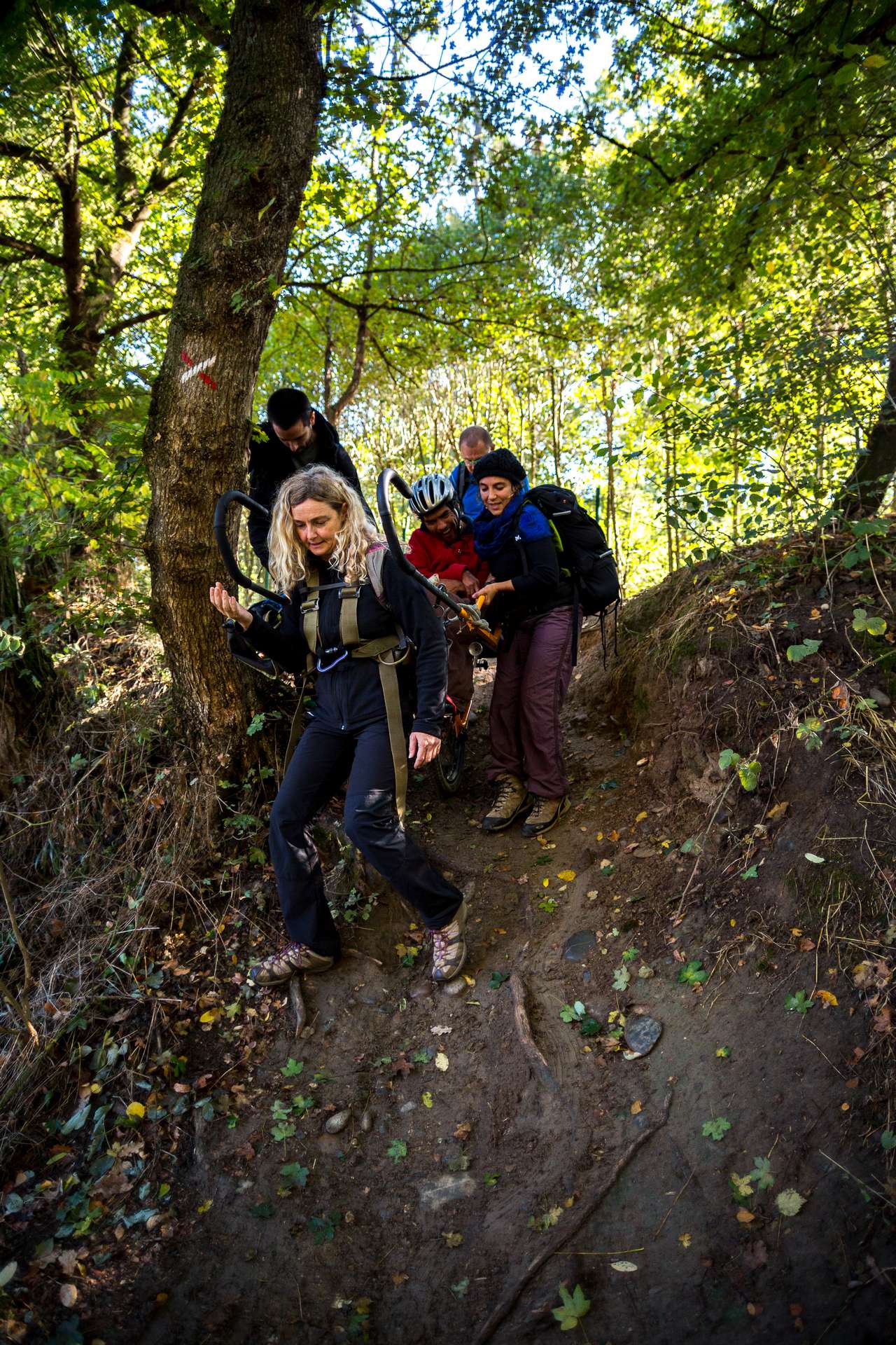 Mixité, solidarité et partage sont au coeur des sorties de l’association UMEN. Nous avons suivi une journée d’initiation aux maniements des Joëlettes : fauteuils à une roue qui permettent aux personnes à mobilité réduite de participer pleinement aux randonnées en empruntant tout type de chemins (sentiers étroits, dénivelés…). Une innovation qui ouvre le champ des possibles. Ici l’équation : ingéniosité technique + solidarité fait encore ses preuves ! Une photo pour célébrer ces inventeurs de génie et toutes ces personnes qui se mettent au service des autres.
