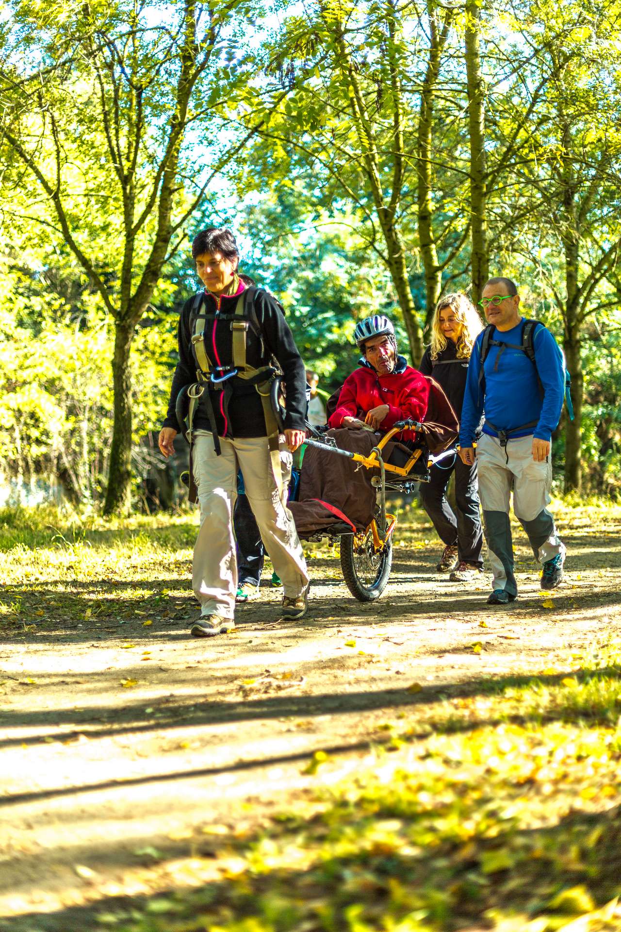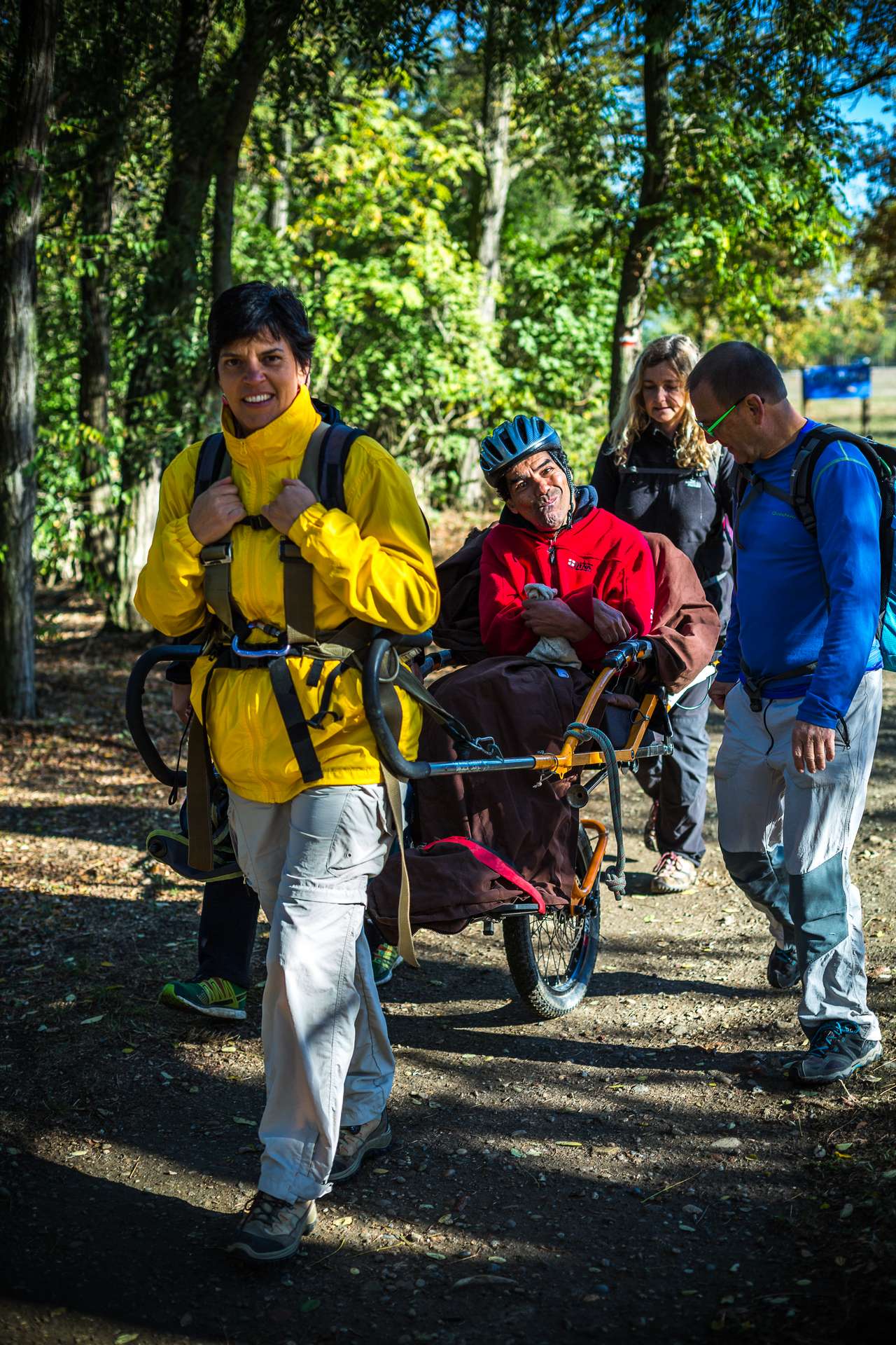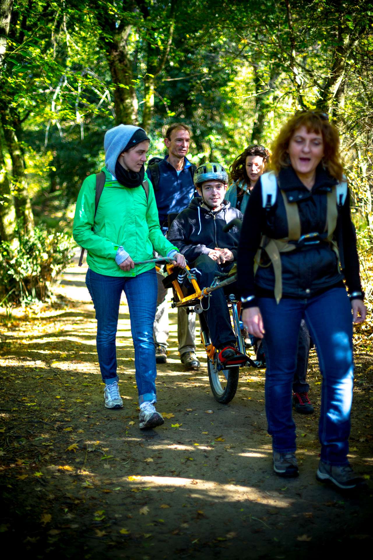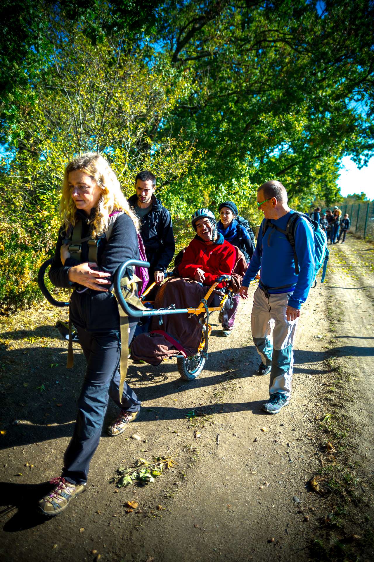 Mixité, solidarité et partage sont au coeur des sorties de l’association UMEN. Nous avons suivi une journée d’initiation aux maniements des Joëlettes : fauteuils à une roue qui permettent aux personnes à mobilité réduite de participer pleinement aux randonnées en empruntant tout type de chemins (sentiers étroits, dénivelés…). Une innovation qui ouvre le champ des possibles. Ici l’équation : ingéniosité technique + solidarité fait encore ses preuves ! Une photo pour célébrer ces inventeurs de génie et toutes ces personnes qui se mettent au service des autres.