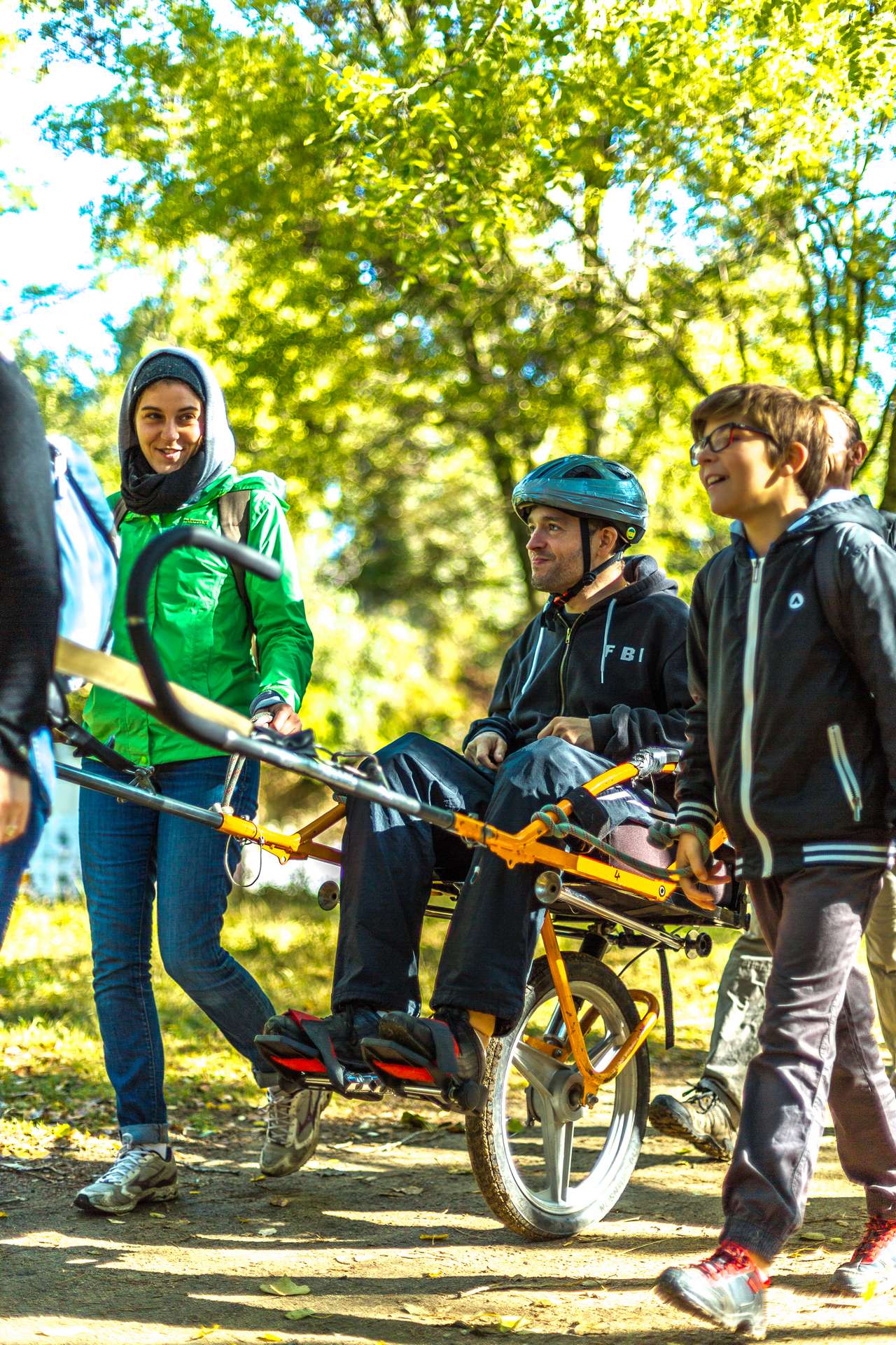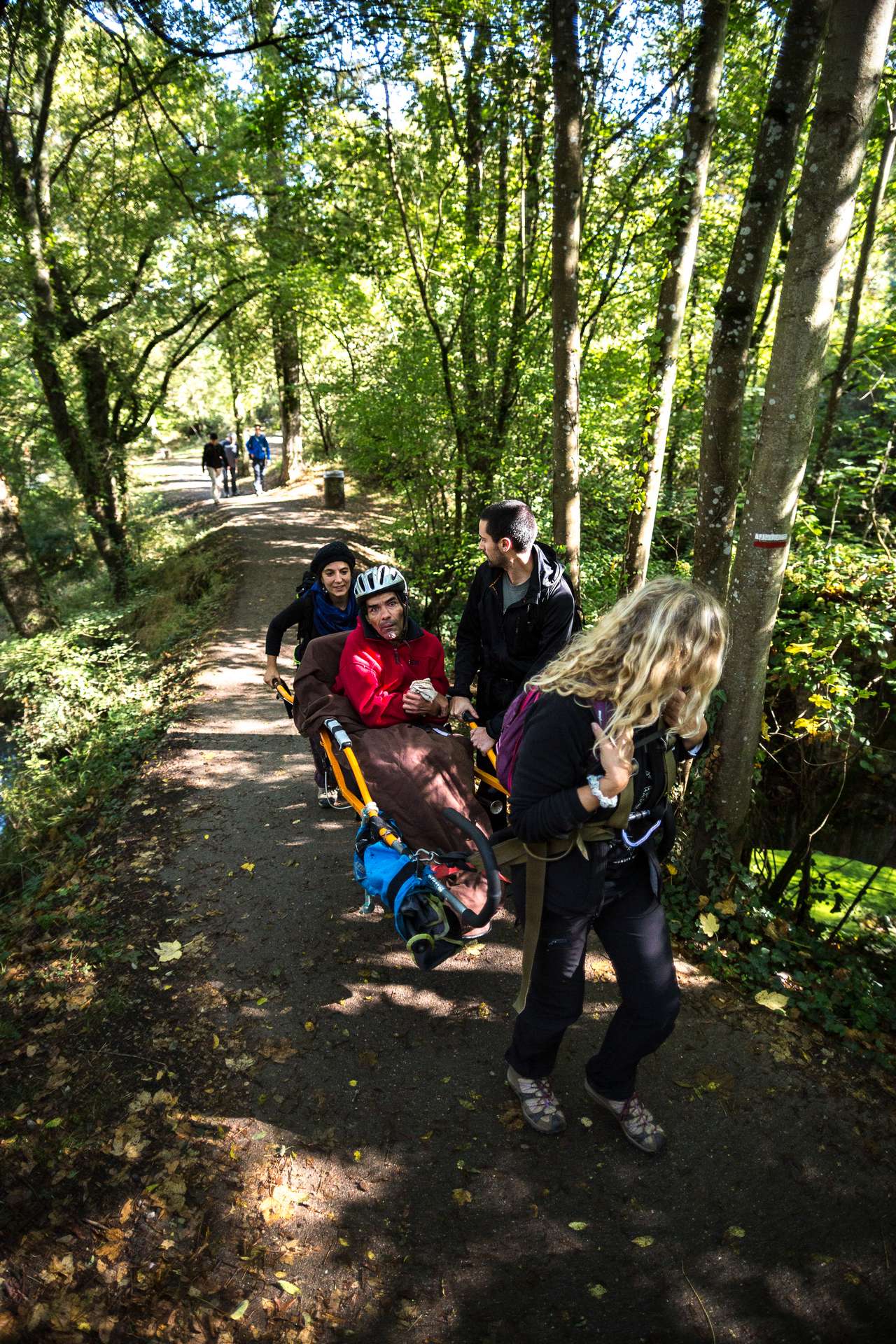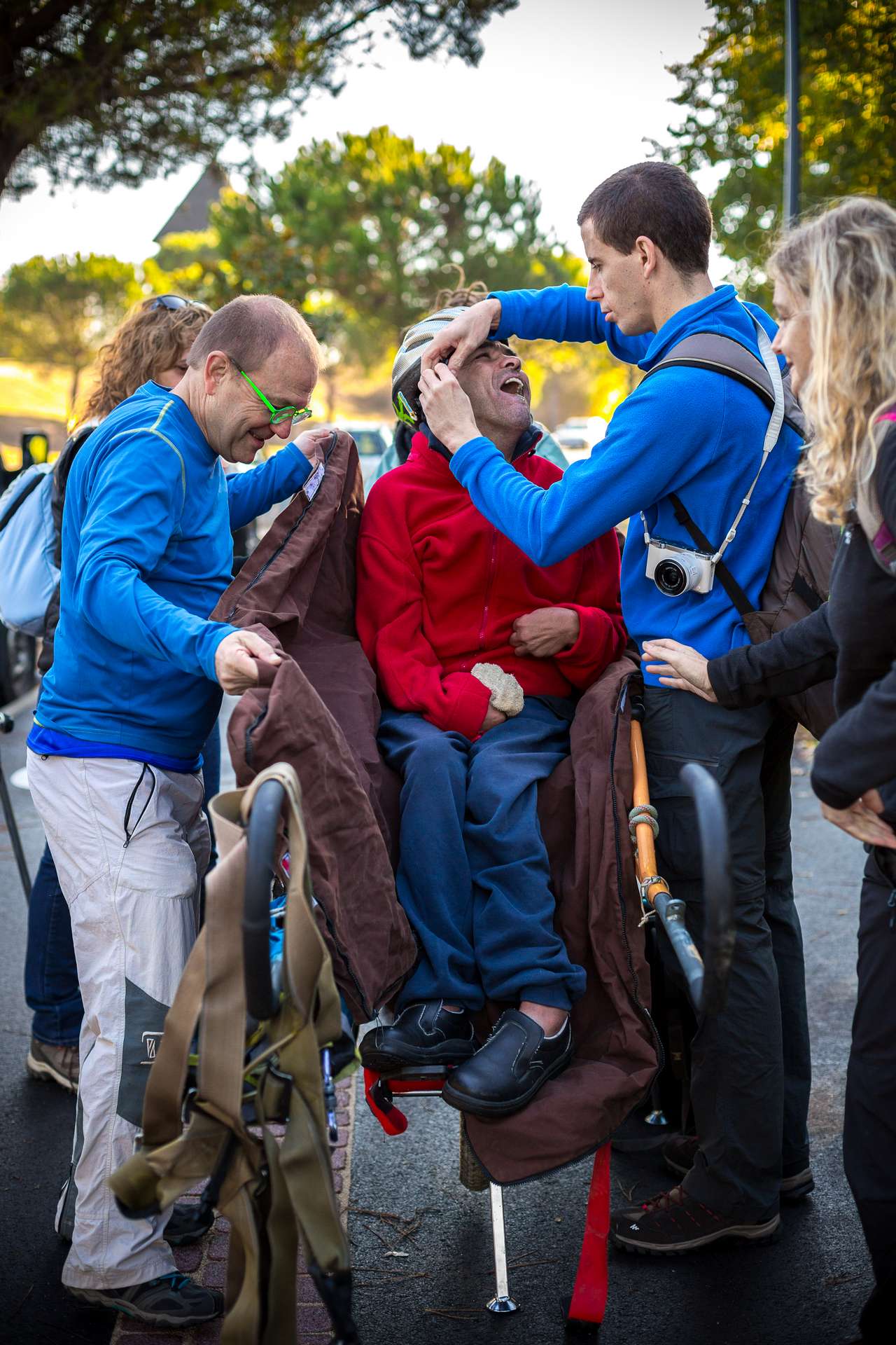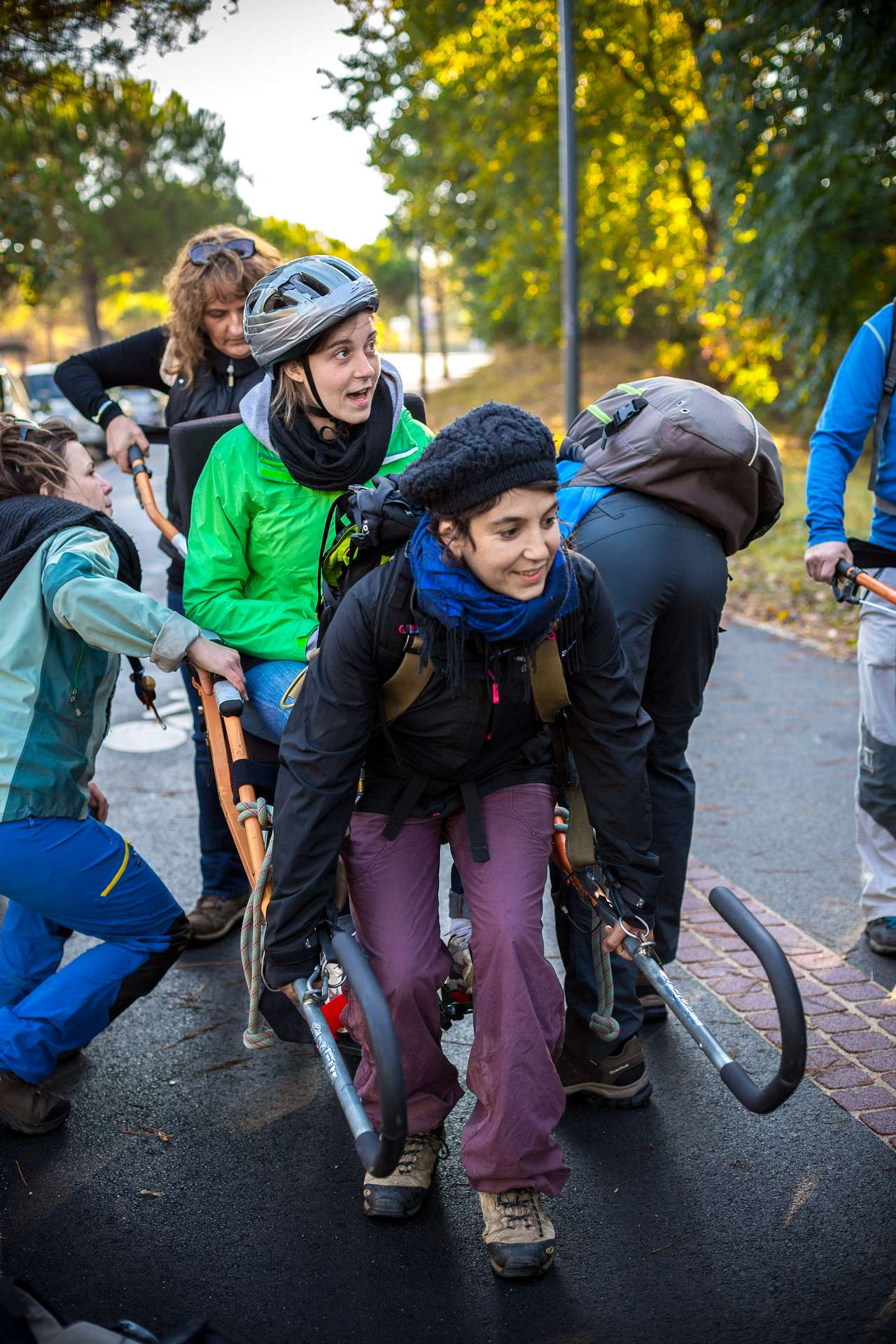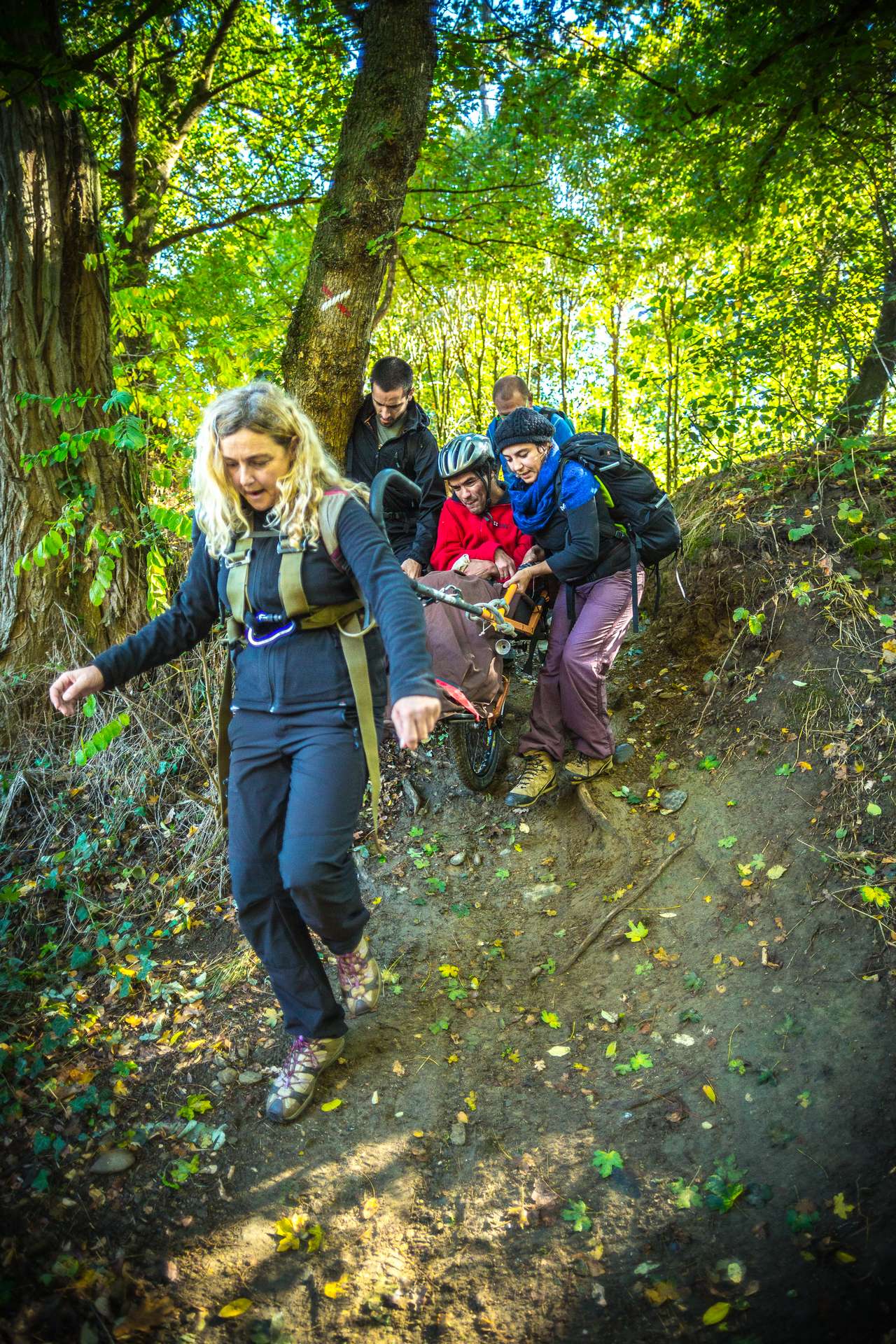 Mixité, solidarité et partage sont au coeur des sorties de l’association UMEN. Nous avons suivi une journée d’initiation aux maniements des Joëlettes : fauteuils à une roue qui permettent aux personnes à mobilité réduite de participer pleinement aux randonnées en empruntant tout type de chemins (sentiers étroits, dénivelés…). Une innovation qui ouvre le champ des possibles. Ici l’équation : ingéniosité technique + solidarité fait encore ses preuves ! Une photo pour célébrer ces inventeurs de génie et toutes ces personnes qui se mettent au service des autres.