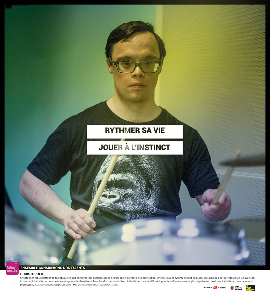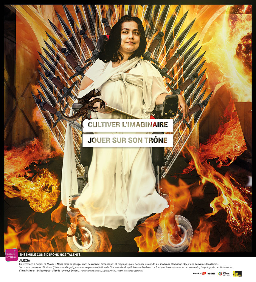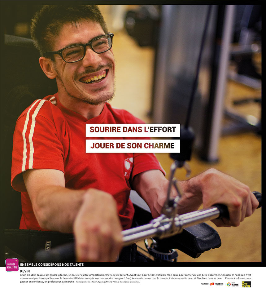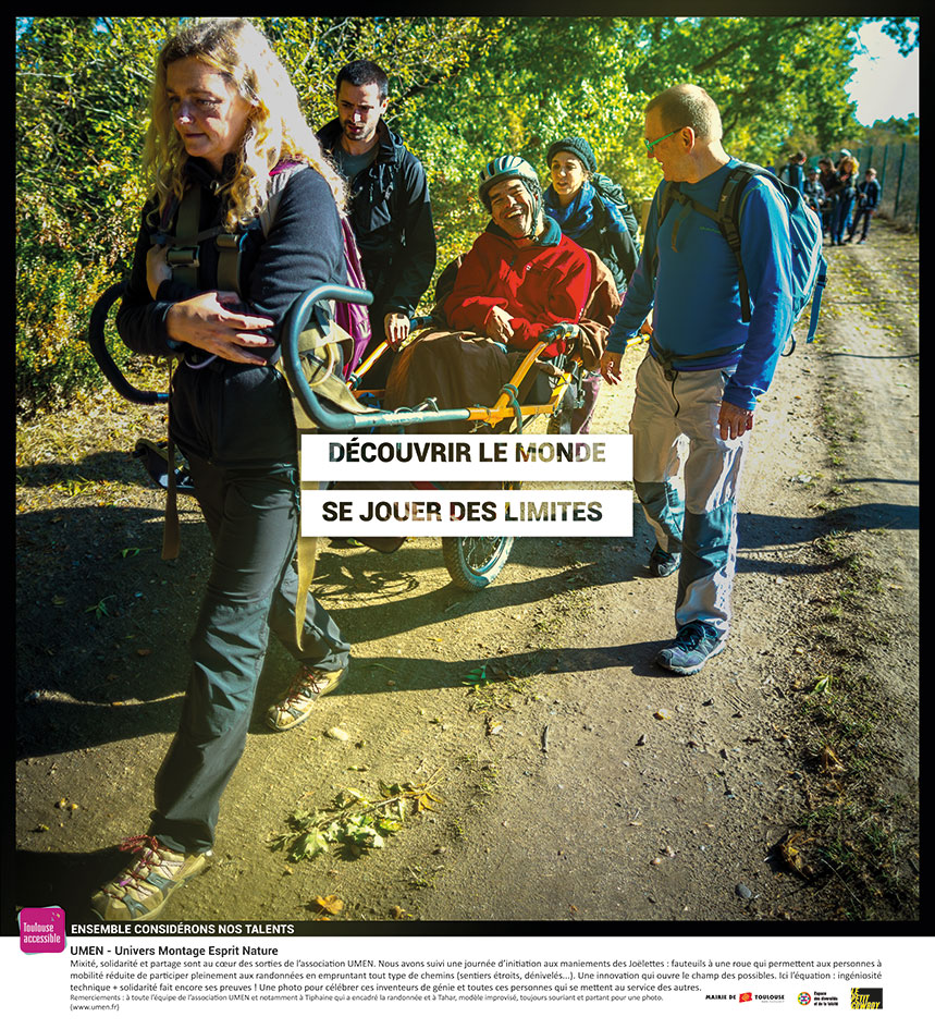 Elle met en image des personnes et des structures qui par leurs énergies et volontés font avancer les choses, repoussent les limites et participent à changer l’image que l’on peut avoir du handicap. Les photos valorisent des personnes au travers d’actions réelles ou imaginaires : sport, travail, création artistique, vie quotidienne… Images et textes s’associent pour montrer une vision positive du monde du handicap et amener notre regard à évoluer sur ces différences.